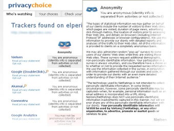TrackerWatcher ti permette di visualizzare dei report con informazioni accurate sul come ed il perché i siti raccolgono dati sugli utenti. Si tratta fondamentalmente delle analisi fornite dal sito privacychoice. L'uso è molto semplice. TrackerWatcher è fondamentalmente un'icona a forma di occhio che si installa nella barra di navigazione di Firefox, da premere quando si vuole visualizzare un report. Non ci sono opzioni di configurazione di sorta.