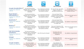 TrackerWatcher ti permette di visualizzare dei report con informazioni accurate sul come ed il perché i siti raccolgono dati sugli utenti. Si tratta fondamentalmente delle analisi fornite dal sito privacychoice. L'uso è molto semplice. TrackerWatcher è fondamentalmente un'icona a forma di occhio che si installa nella barra di navigazione di Firefox, da premere quando si vuole visualizzare un report. Non ci sono opzioni di configurazione di sorta.